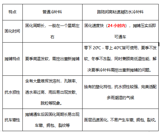 二、路陸邦高粘速凝防水冷補(bǔ)料在市場的優(yōu)勢: