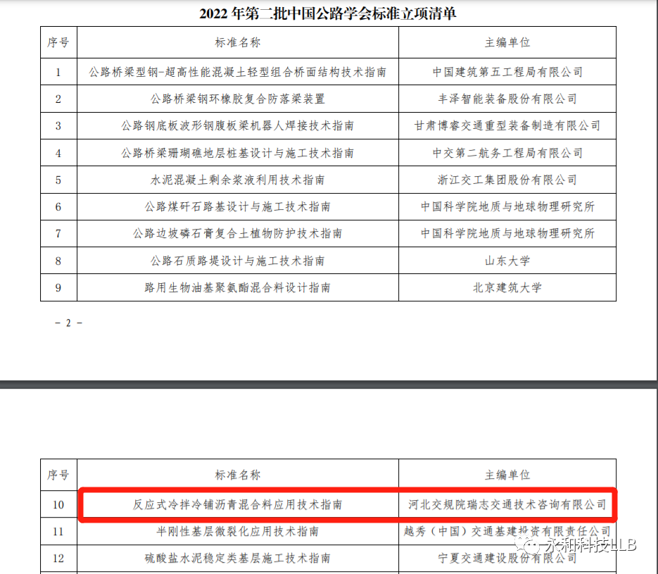 數(shù)據(jù)驗(yàn)證及數(shù)十年在多個(gè)冷拌冷鋪公路項(xiàng)目的成功應(yīng)用,于2023年1月順利通過《中國公路學(xué)會(huì)》國家級團(tuán)體標(biāo)準(zhǔn)初審認(rèn)定